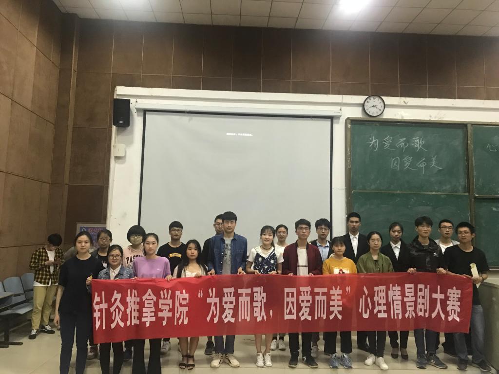 江中新闻网讯(通讯员 蒋维晏 学生记者 王艺晓)为进一步推动针灸推拿院学生心理健康教育工作的发展,引导同学们关注自我,关心他人,培养健全人格,以阳光心态积极正视压力,迎接未来的挑战和机遇,实现生活、学习和恋爱的和谐发展。针灸推拿学院学生会心理保健会于4月20日晚半在知行楼T4教室举办了“用心看世界,因爱暖心灵”心理情景剧比赛。