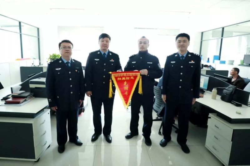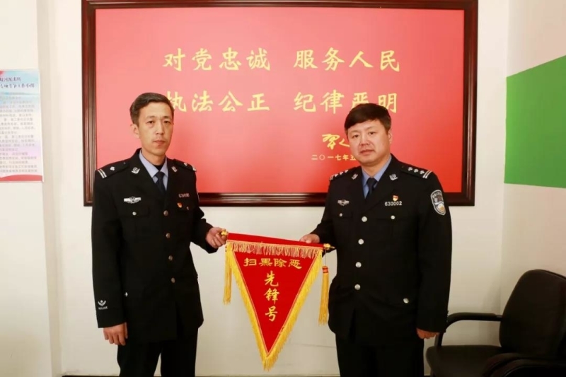 活动中,政委王彬为刑事侦查大队一中队、蚂蚁河派出所授予2019年3月份“扫黑除恶先锋号”流动锦旗,表彰刑事侦查大队一中队、蚂蚁河派出所在侦办涉黑涉恶犯罪集团案件过程中攻坚克难、勇于担当,为全局扫黑除恶专项斗争做出的突出贡献。