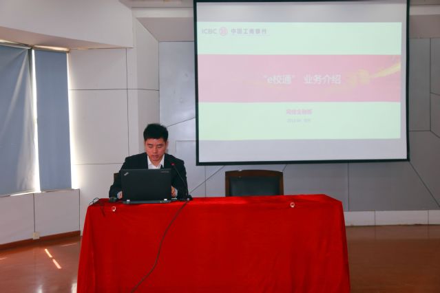 2019年4月17日下午2:00,学工处、财务处在学术报告厅组织了“e校通学杂费缴纳方法”培训活动,特别邀请了工商银行新港支行的吴经理和梁经理对我院全体班主任进行了培训。