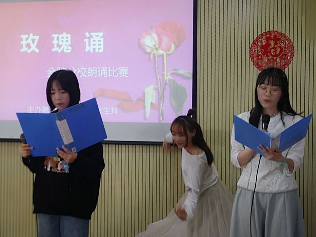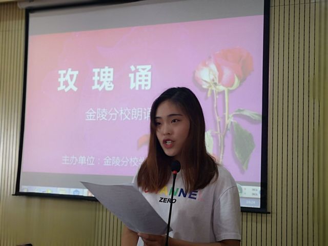 为丰富金陵分校学生校园生活,提升学生综合素养,金陵分校学生科于4月18日下午15:20在报告厅举行了一场以赞美女性真善美为主题的“玫瑰诵”朗诵比赛。