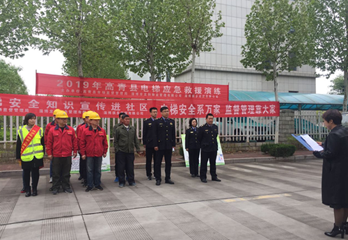 为进一步加强我县电梯安全应急管理工作,提高电梯突发事件的应急响应处置能力,4月26日,县市场监督管理局组织开展了2019年电梯应急救援演练活动。演练活动模拟电梯故障出现困人,解救被困乘客的过程。县市场监督管理局、淄博祺多商贸有限公司、淄博龙和物业管理有限公司、高青华悦物业管理有限公司30余人参加演练活动,100余群众现场进行了观摩。