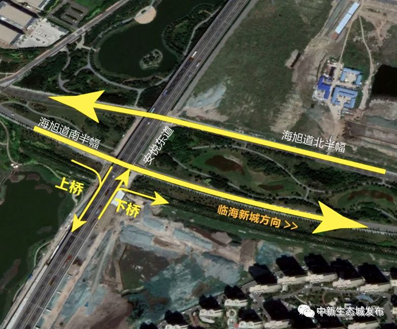 为了方便驾驶员通过匝道桥进出生态城,今天,海旭道北半幅(安正路到安明路段)也将同步开通。届时,海旭道北半幅为由东向西单向通行;海旭道南半幅则将由现在的双向通行,变为由西向东单向通行。