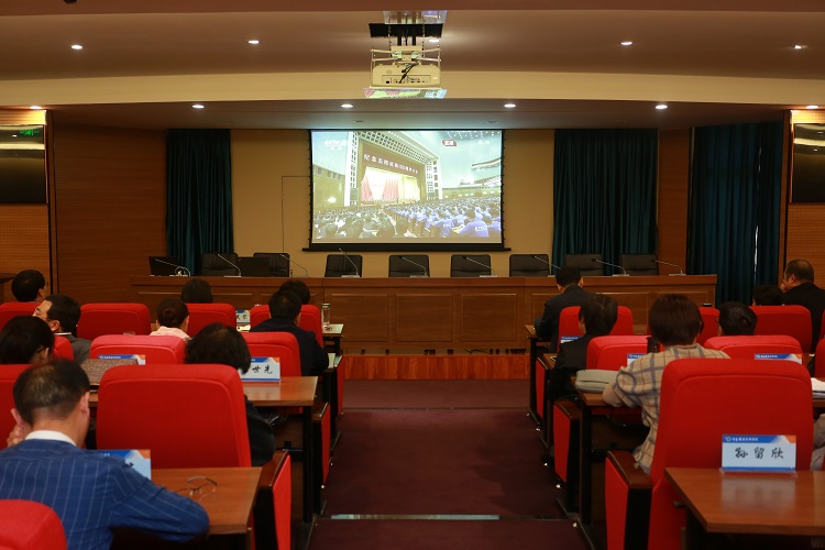 4月30日上午,在行政楼238会议室,校党委成员和各单位党政负责人与88名青年学生代表一同收看了纪念五四运动100周年大会直播。