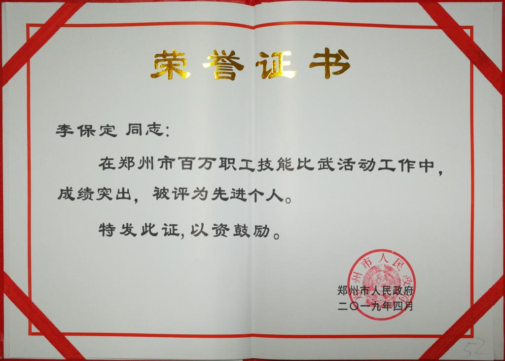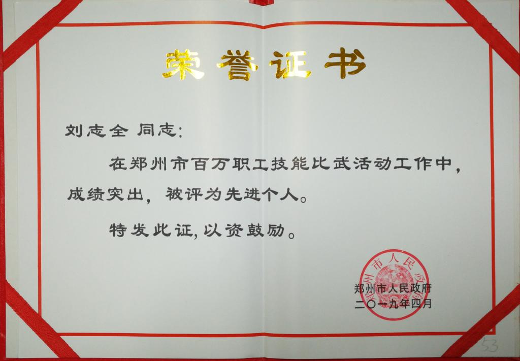 我校两名教师获郑州市百万职工技能比武活动先进个人称号