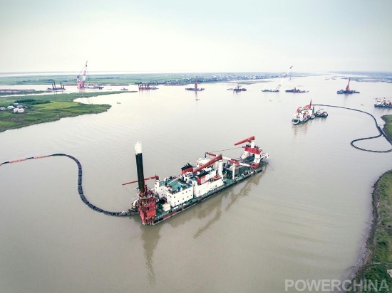 另一边,世界上最大的河道整治项目之一——孟加拉帕德玛大桥河道整治项目,从一开始就面临质量标准要求极高、施工工艺没有先例可循、当地资源供应短缺、作业区域点多面广、人力资源严重不足等严峻形势,而作为孟加拉国本届政府最大的民心工程,它的建设,也为中国电建海外高质量发展再加码。