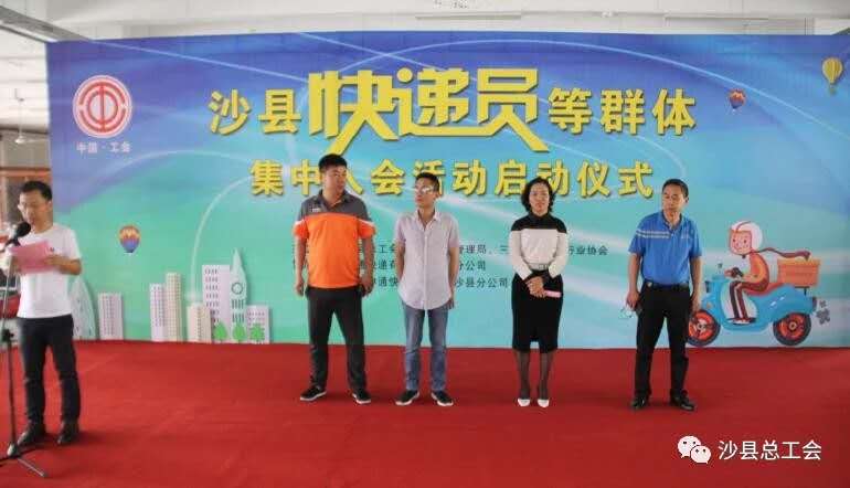 4月29日,沙县总工会联合沙县邮政管理局、三明速递物流行业协会在金沙园爱乐园隆重举办“沙县快递员等群体集中入会活动启动仪式”。来自申通、中通、邮政、顺丰、百世、韵达、圆通等12家快递公司200名职工代表参加活动。