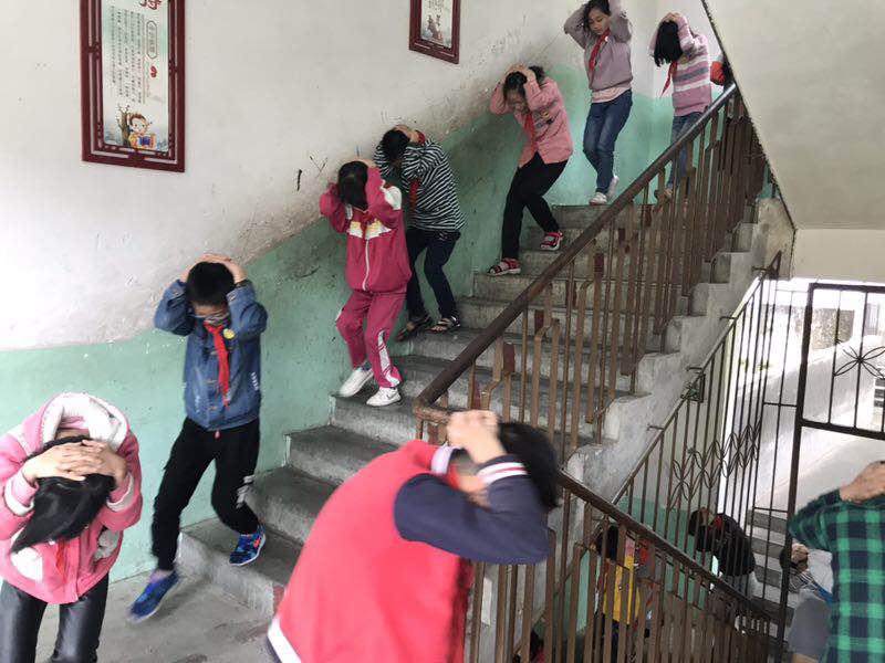 在一阵急促的警报声中,灾害紧急避险演练拉开序幕。各班学生迅速弯腰、抱头、扶墙,在老师的引导下,沿着楼道、楼梯,迅速通过各个安全出口,有序地疏散到达安全地带。撤离完毕后,班长迅速清点安全撤离的人数并进行汇报。副校长还从思想上对学生进行了防灾减灾的主题教育,通过循循善诱地讲解,向学生传授遇到灾情时的紧急处理方法。