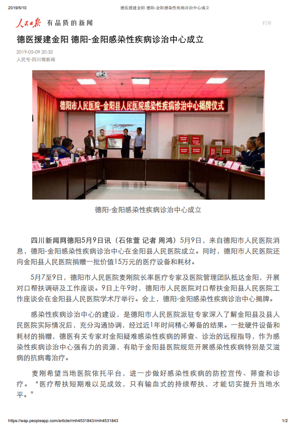 德医援建金阳 德阳-金阳感染性疾病诊治中心成立