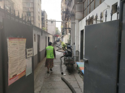 “听哨声就报到”,大观街道立即组织环卫、应急突击队伍,利用瓢耙把淤泥勾出在一桶一桶的清运,同时调派专业清淤车辆对化粪及较深管网进行抽排及管道苏通,对三合营社区老旧居民小区的下水道进行全面的清淤工作。