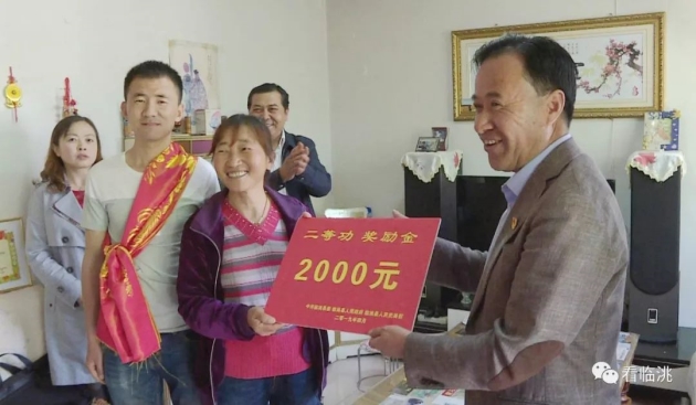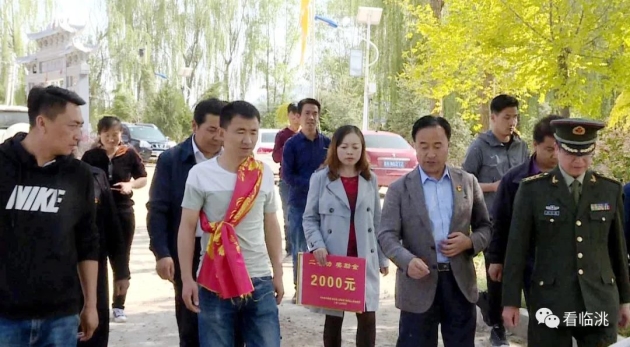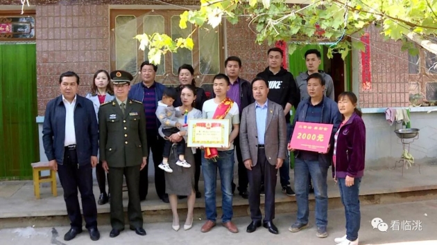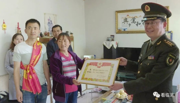 临洮讯(记者 田建鑫 通讯员 毛梅) 4月30日,县委常委、县人武部政委张小强,副县长李兰广为荣立二等功现役军人文瑶及其家属送去喜报和奖励金。