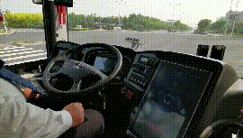 在生态城运营的智能公交车上,驾驶位置上会有确保智能公交车安全运营的“安全员”。在车辆的正常行驶过程中,安全员不参与驾驶,只是在遇到故障等意外状况时,可以第一时间切换到人工驾驶模式。