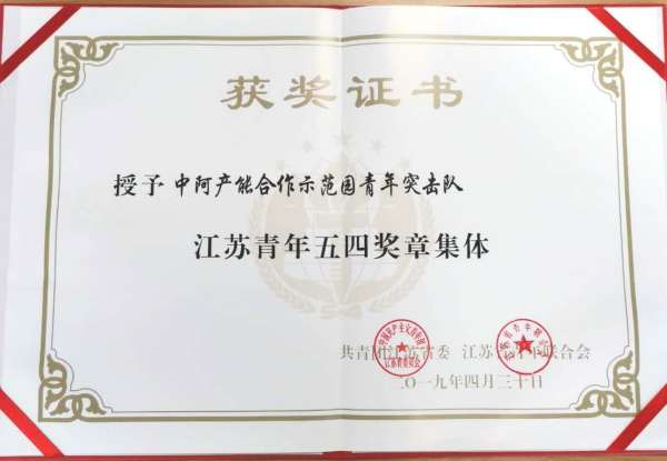 中阿产能合作示范园青年突击队荣获“江苏青年五四奖章集体”