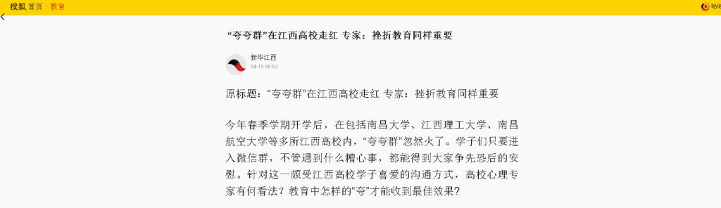 《搜狐》:“夸夸群”在江西高校走红 专家:挫折教育同样重要