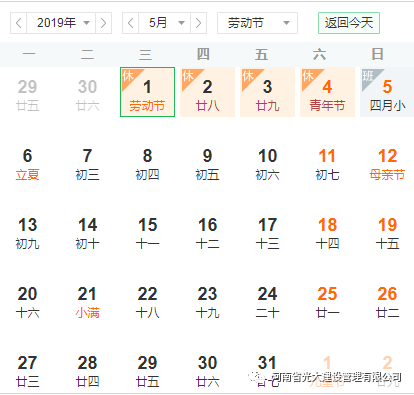 ?根据《国务院办公厅关于2019年部分节假日安排的通知》精神,现将劳动节放假安排及作息时间的调整通知如下:2019年5月1日至4日放假调休,共4天。4月28日(星期日)、5月5日(星期日)上班。