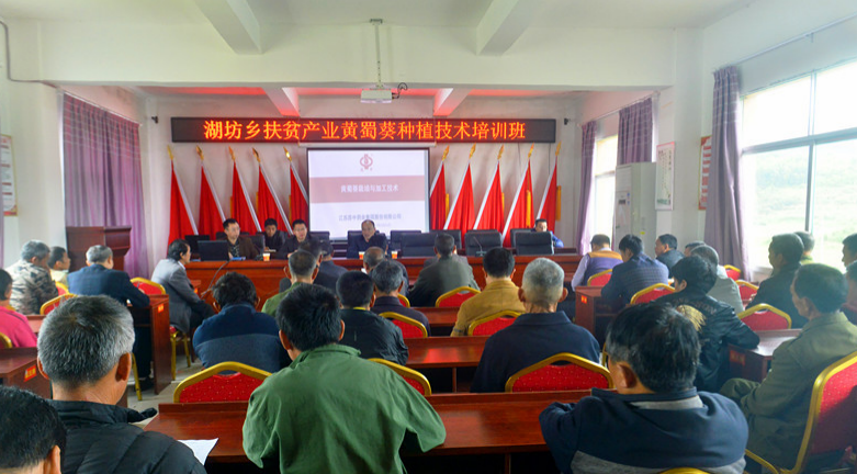 阳光明媚,春暖花开,正值春耕农忙时节。4月15日,湖坊乡为助力扶贫,组织举办黄蜀葵种植技术培训班。培训邀请了江苏苏中药业集团黄蜀葵种植技术人员为农户培训黄蜀葵种植技术。70余名种植户和贫困户参加培训。技术人员通过PPT课件的形式讲解了黄蜀葵的生长习性及种植黄蜀葵过程中应注意的问题、黄蜀葵种植所能带来的经济效益、公司对黄蜀葵的收购政策等。