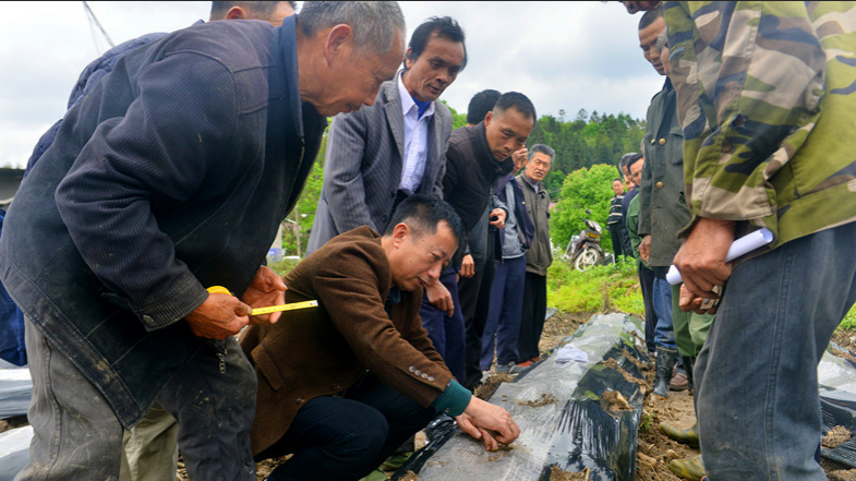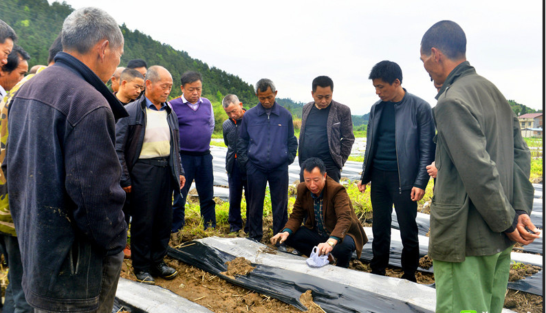随后,在技术人员的带领下,大家来到湖坊乡水湖村黄蜀葵种植基地,进行黄蜀葵种植现场培训。技术人员结合实际,现场示范,详细讲解了黄蜀葵选种、盖膜、播种等种植技术,并就农户提出的问题进行了一一解答。现场学习氛围浓厚,场面热闹非凡。