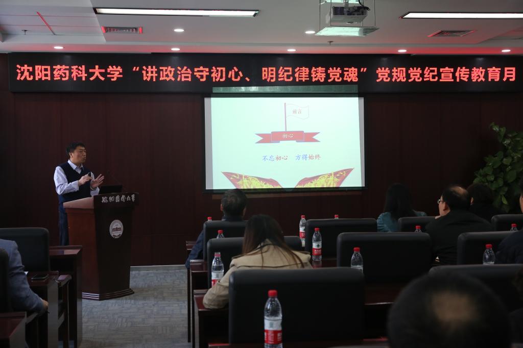 为深入贯彻落实中央、省委关于全面从严治党的决策部署精神,认真学习贯彻习近平总书记在中央纪委三次全会上的重要讲话精神和系列重要论述,落实学校党委关于推进我校全面从严治党、推进党风廉政建设和反腐败工作要求,进一步夯实广大党员干部特别是中层以上党员领导干部履行全面从严治党主体责任和监督责任的政治意识,进一步提高履行“一岗双责”的能力素质,根据《沈阳药科大学“讲政治守初心、明纪律铸党魂”党规党纪宣传教育月实施方案》安排,4月26日,在南校区行政楼117会议室,校纪委办公室组织开展了第一期廉政大讲堂活动。
